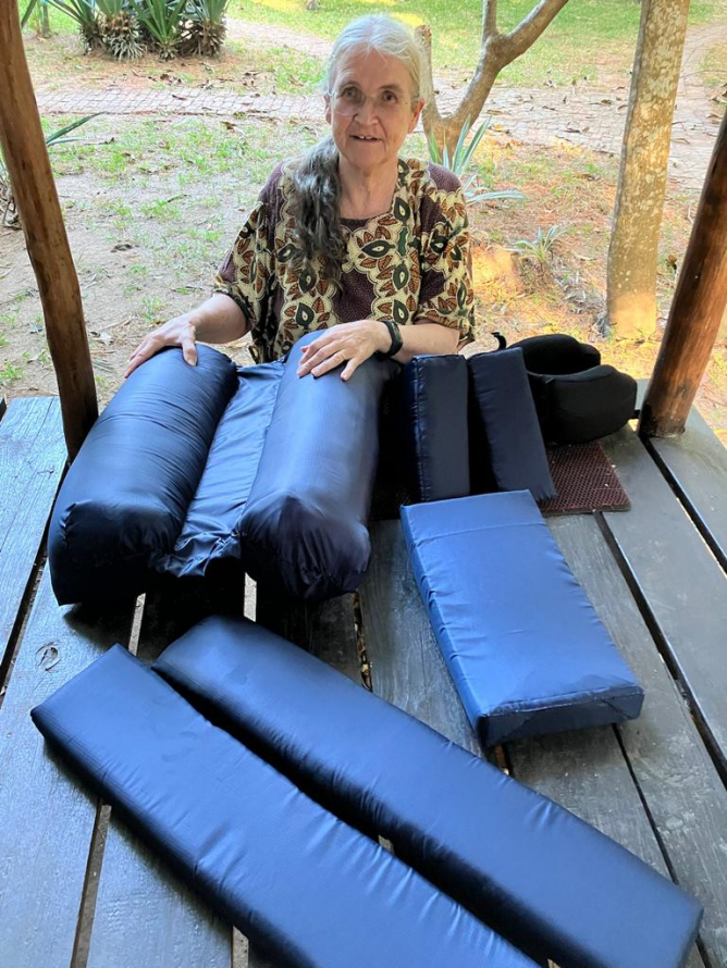 The new design sleep system and corner chair supports for Caroline, were taken there this morning. They work really well. I am very pleased with my new design. I will have to patent it!